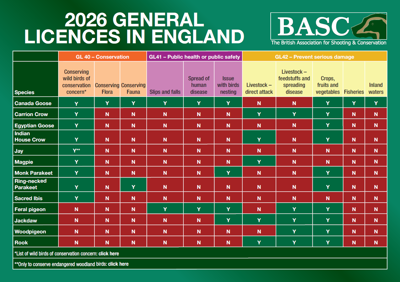 If you are a BASC member and need further advice on general licences, please contact your regional team on 01244 573 000.